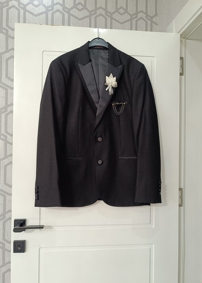 Düğünde sadece 2-3 saat giyildi. Tertemiz. Normal takıma dönüştürebilir. Kol düğmesi mevcut