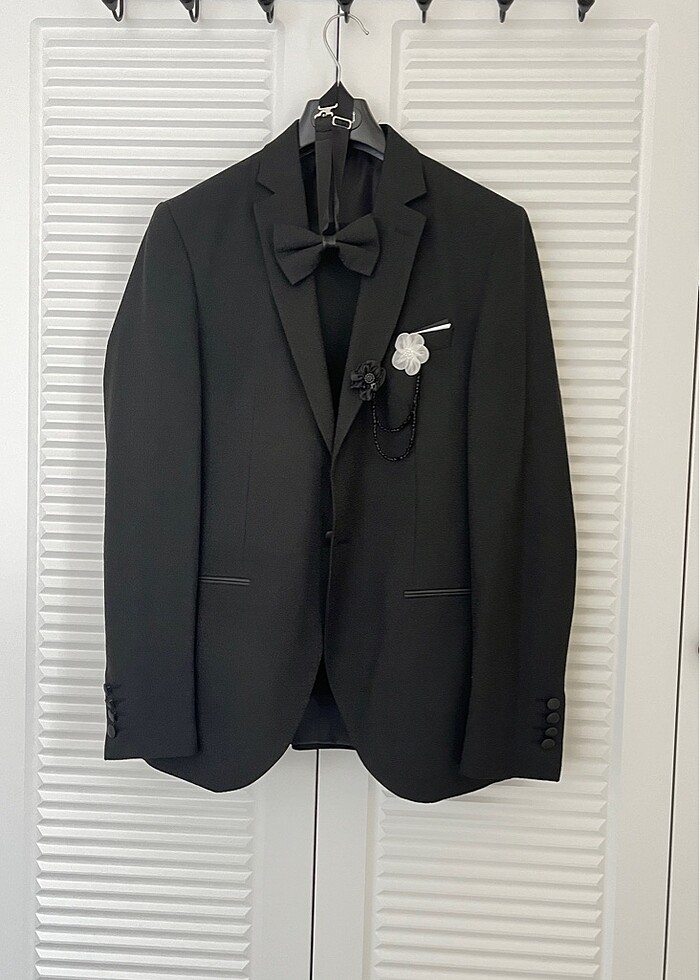 Ceket pantolon yelek papyon dahildir.Ceketin yakasında saten yaka vardır o söküldü ama isteğe göre tekrar dikilebilir oda içindedir.