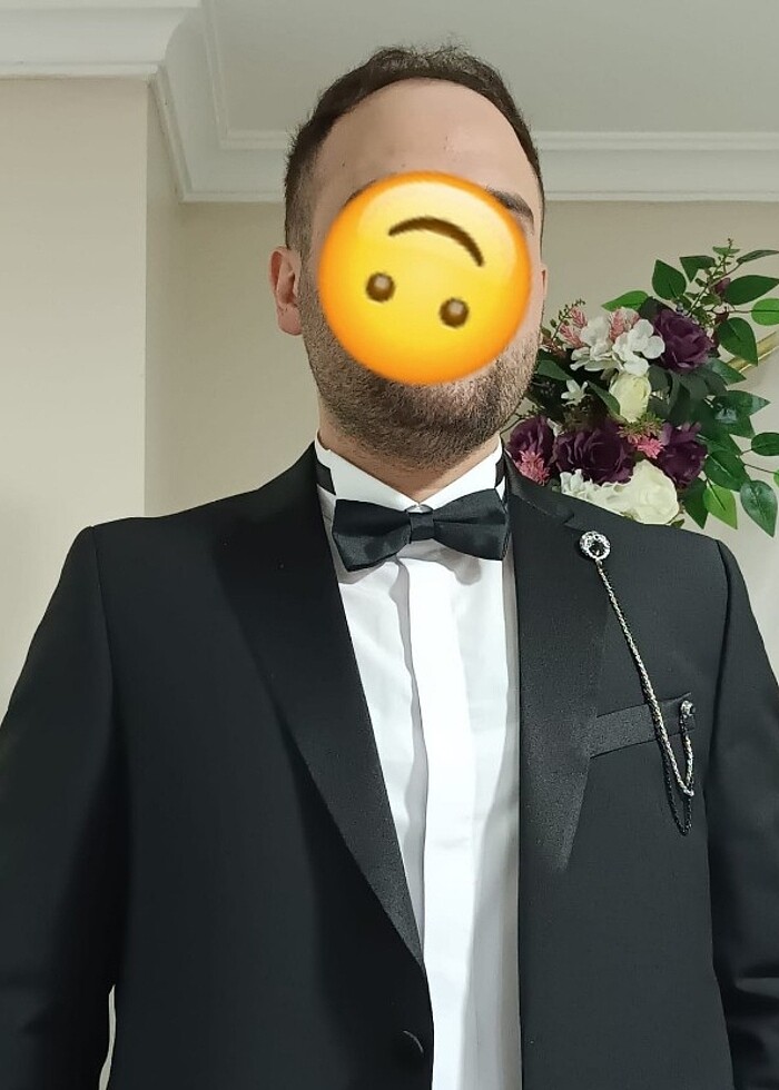 Gömlek slim fit xxl 3 ay önce düğünde giyildi Smokin takım Bel kuşağı Papyon Broş var Ceket 56 beden Manken boy 180