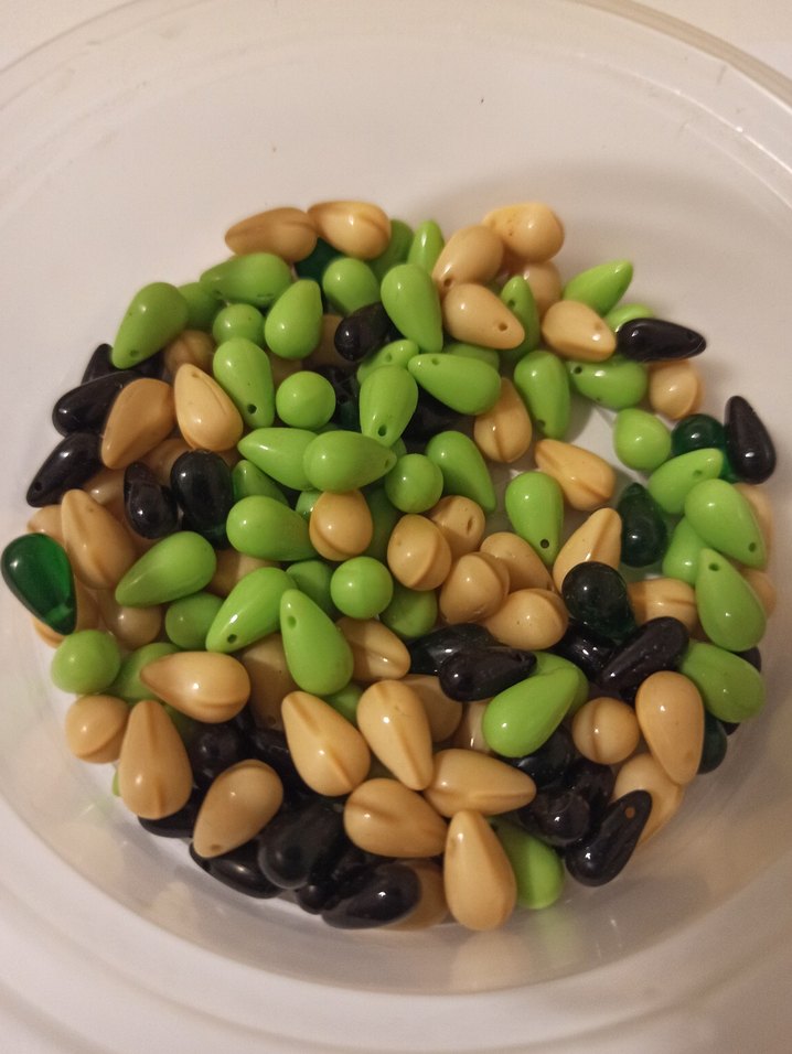 Yeşil, bej ve siyah tonlarında damla cam boncuk adet 2 TL istediğiniz miktar için lütfen iletişime geçiniz stok durumuna göre size özel ilan açılacaktır diğer çeşitlerimiz için sayfamıza bekleriz