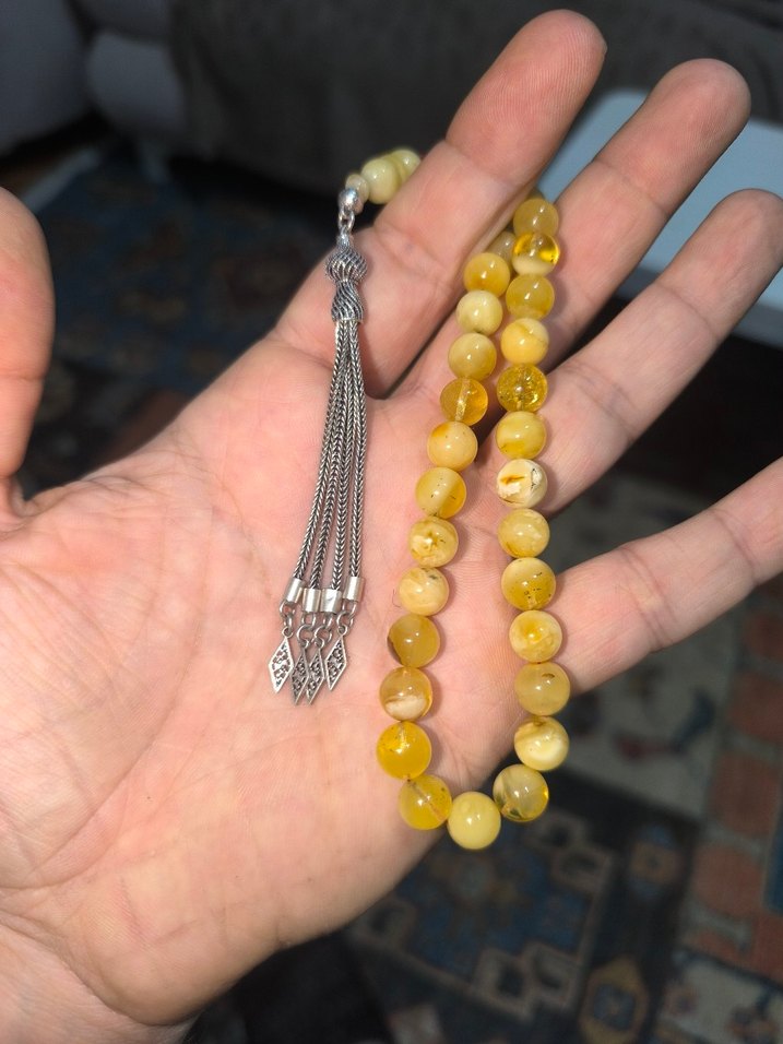 Damla kehribar tesbih orjinaldir gümüş püsküllü harika çekime sahiptir