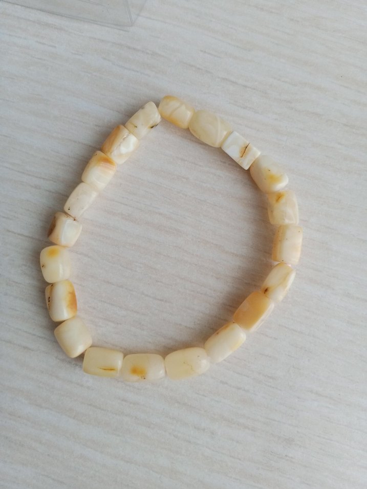 DAMLA Kehribar bileklik 3.84 gram 17 cm Bej boncuklardan oluşan bu bileklik, minimalist ve bohem tarzıyla günlük kullanıma uygundur. Hafif rengi ve sade tasarımıyla retro dokunuş katar.