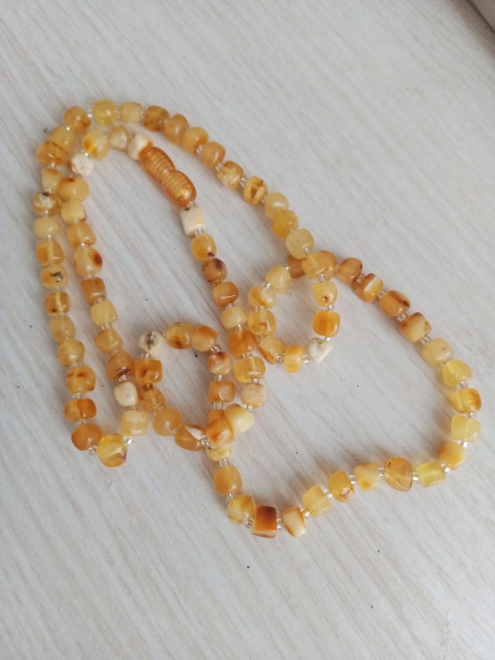 Damla Kehribar kolye 60 cm 11 gram Uzun bej boncuklardan oluşan, bohem tarzda gündelik kullanıma uygun doğal görünümlü kolye.