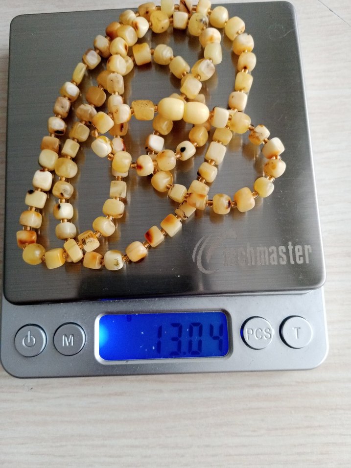 Damla Kehribar kolye 65 cm 13 gram Uzun bej renkli, boncuklu kolye, sade ve desensiz tasarımıyla bohem ve minimalist tarzlara uygundur, günlük kullanım için idealdir.