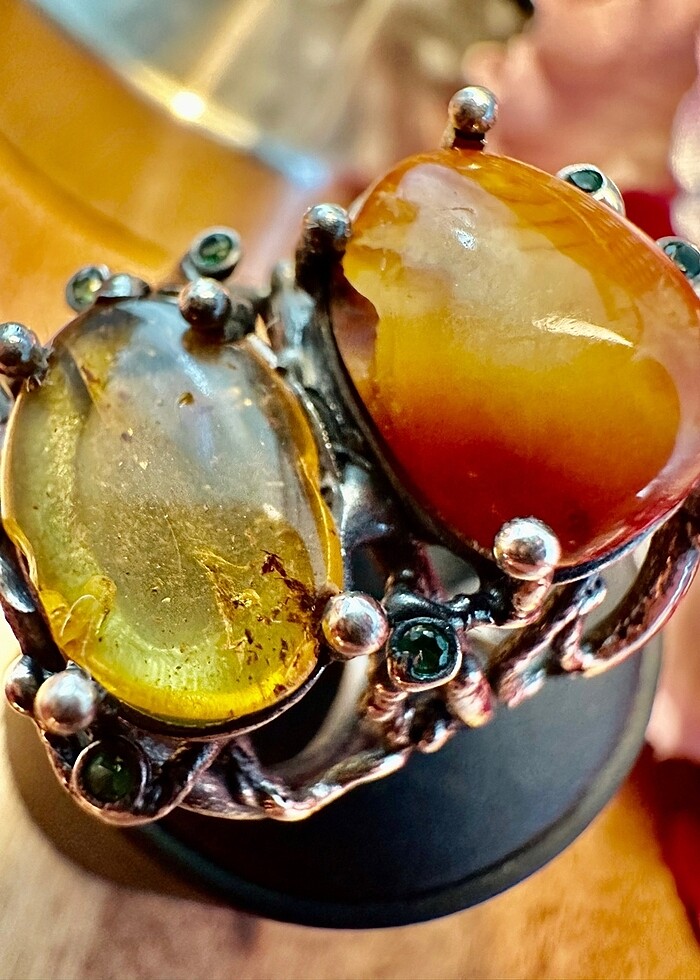 Damla kehribar özel tasarım bayan yüzük 925 ayar gümüş