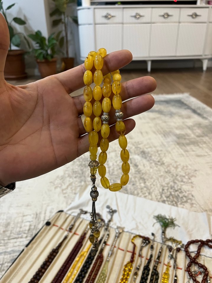 Damla kehribar. Parlak Sarı Bohem Erkek Tesbih