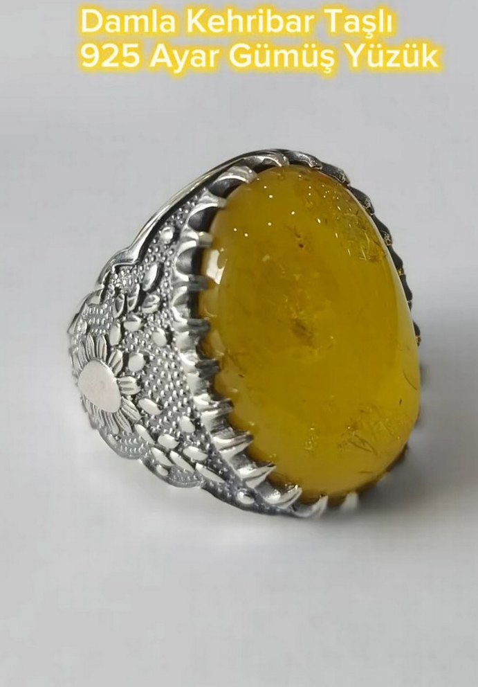 damla kehribar taşı 925 ayar gümüş yüzük 10.50 grm ağırlığında parmak ölçüsü yapılır şiparişle yapılır