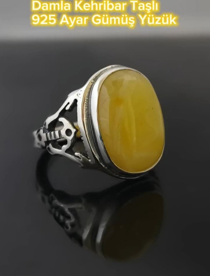 damla kehribar taşı, 925 ayar gümüş yüzük 9 grm ağırlığında parmak ölçüsü yapılır şiparişle yapılır