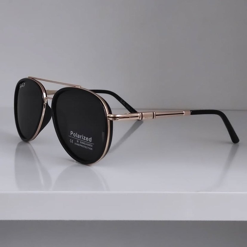 Kadınlar için modern klasik tasarıma sahip, parlak siyah çerçeveli ve tokalı detaylı gözlükler. Polarize lensler göz koruması sağlar. ️