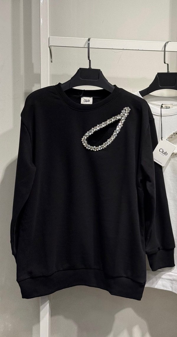 Damla taş dekolteli Siyah Kadın Sweatshirt