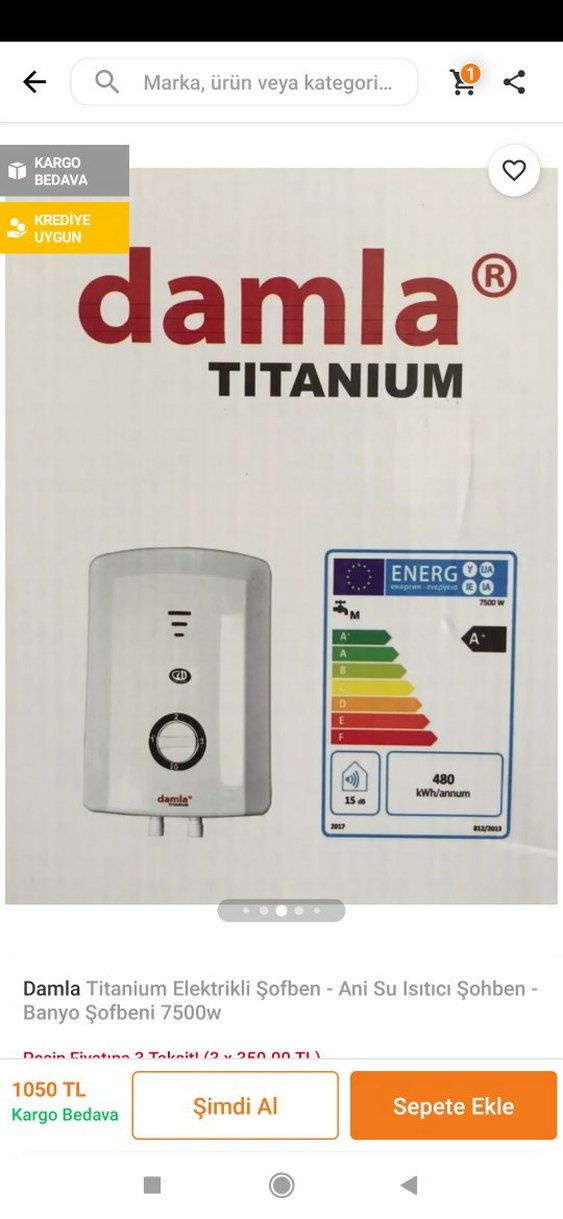 Damla Titanium beyaz ve gri renklerdeki elektrikli sofben, ani su ısıtıcıdır ve A+ enerji verimliliği sağlar. Yıllık 480 kWh enerji tüketir.