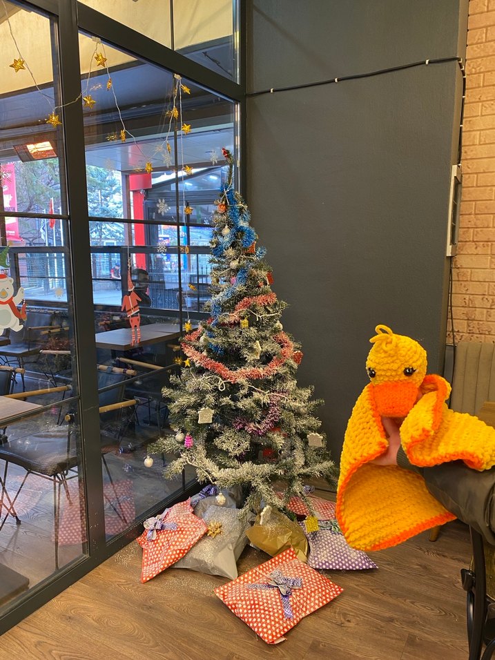 Yumuşak dokulu, neşeli tasarımlı sarı renkli peluş oyuncak ördek.