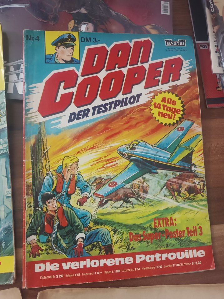 Dan Cooper Testpilot Sayı 4 - Kayıp Devriye 1981 Yılı Bastei Verlag Yayınları Temiz duruyor yırtık eksik sayfa yok. Yanında 4 Adet sayfa eksik/ yırtık sayfalı Almanca Çizgi Roman Dergiler hediyedir (1979 lardan Die Blauen Panther X1 ve 3 Tane de Kung Fu Magazin Dergisi)
