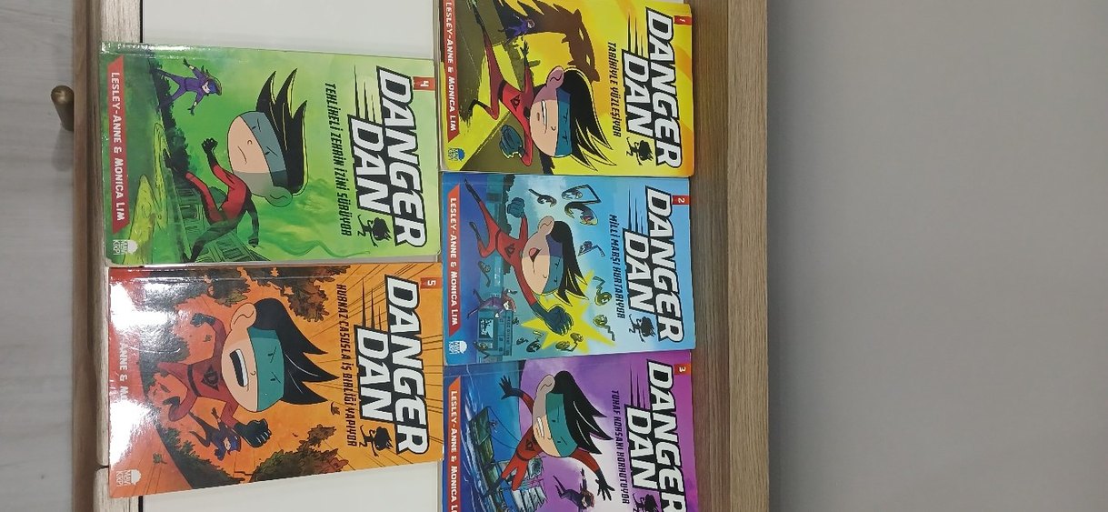 Lesley-Anne ve Monica Lim'in Danger Dan serisinden 5 çocuk kitabı içeren, renkli macera hikayeleri sunan bir set.