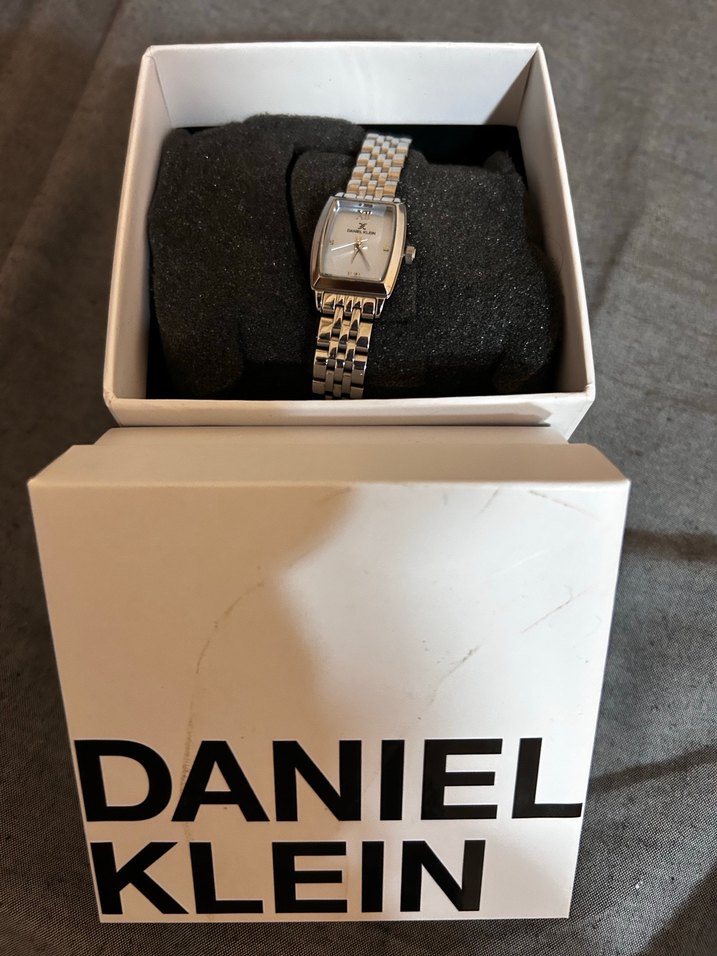 Daniel Klein markalı, beyaz kadran ve gri metal bantlı, tokalı kadın saati. Trendy casual ve Parisian counterculture tarzlarını yansıtıyor. ⌚