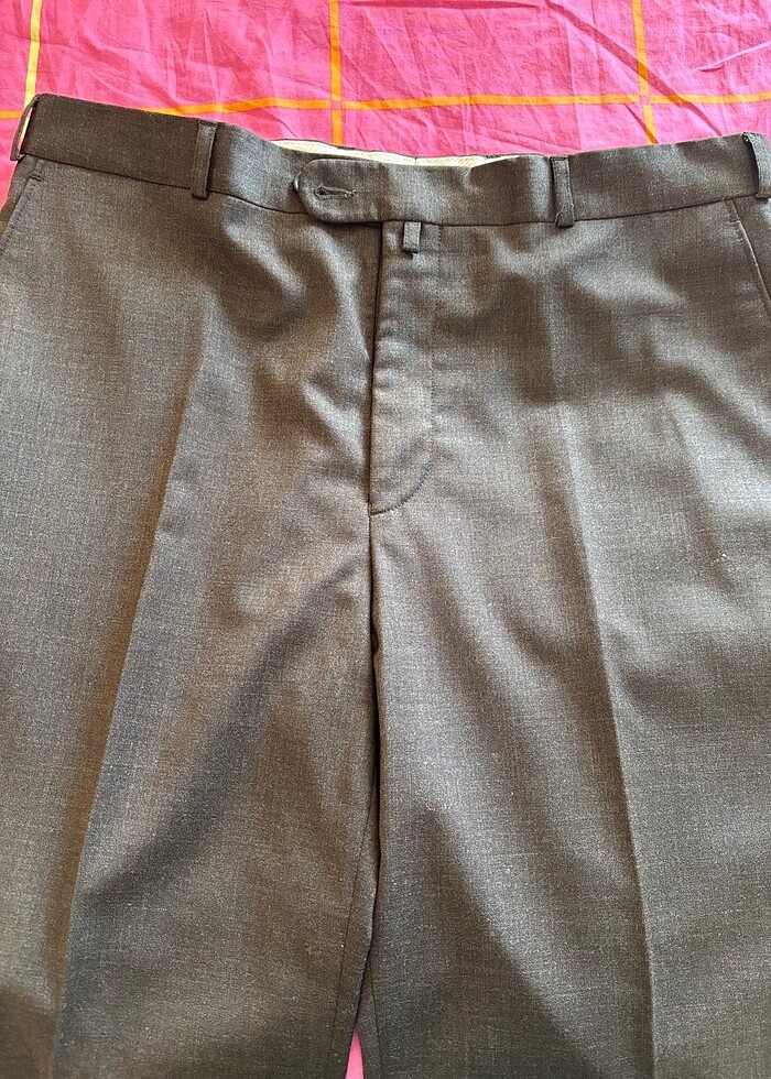 Belkide hic giyilmemis, saf yun, oldukca kaliteli, koyuca kahverengi, 54 beden erkek pantolonu.Paca 23.5 cm, belden boy 107 cm, bel 48 cm...