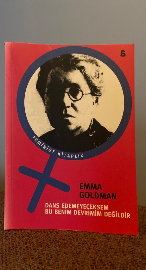 Emma Goldman'ın 'Dans Edemeyeceksem Bu Benim Devrimim Değildir' adlı feminist kitaplık serisinden roman, kırmızı kapak ve yazarın portresiyle dikkat çekiyor.