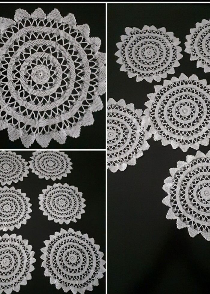 Yeni hiç kullanılmamış 1 peçete çok az daha büyük biraz kiloş gibi modeli iğne oyasi gibi duruyor el emeği göz nuru ölçüsü 1 tane büyük olan 24 Cm.digerleri 21 cm. 22 cm.alana hayırlı olsun
