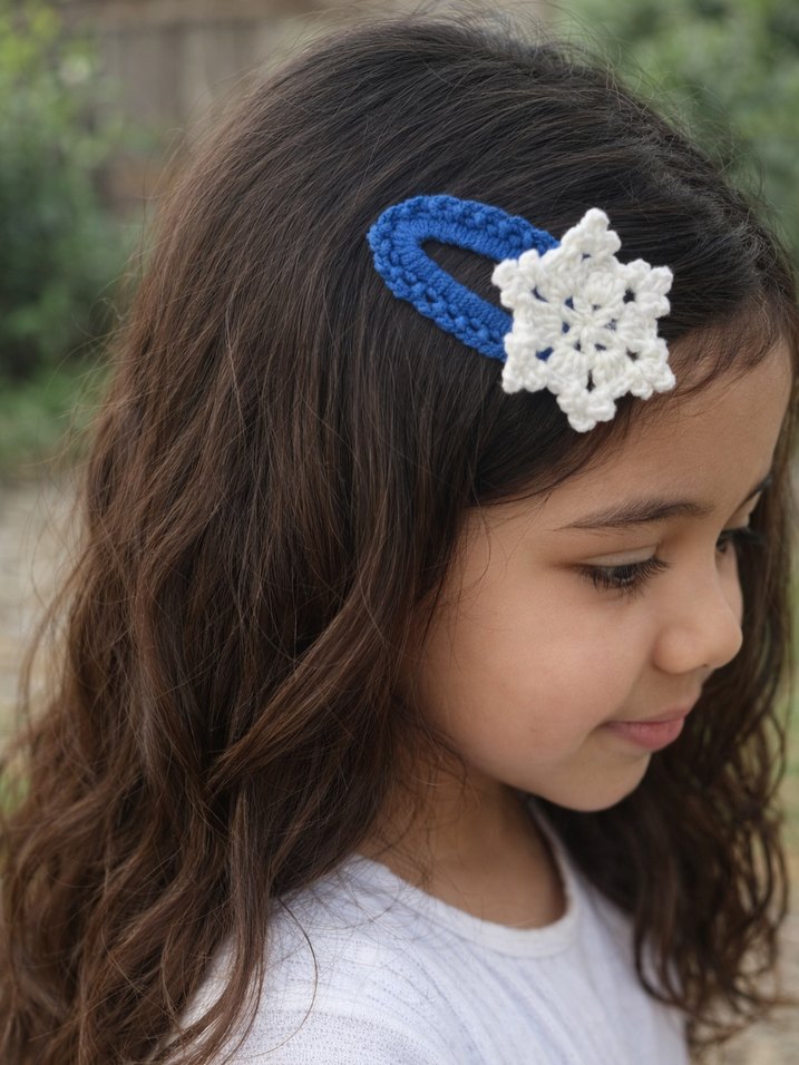 Renkli bohem tarzda, beyaz nakışlı dantel detaylı çocuk saç tokası. Saçlarda şık ve sevimli bir dokunuş sağlar.