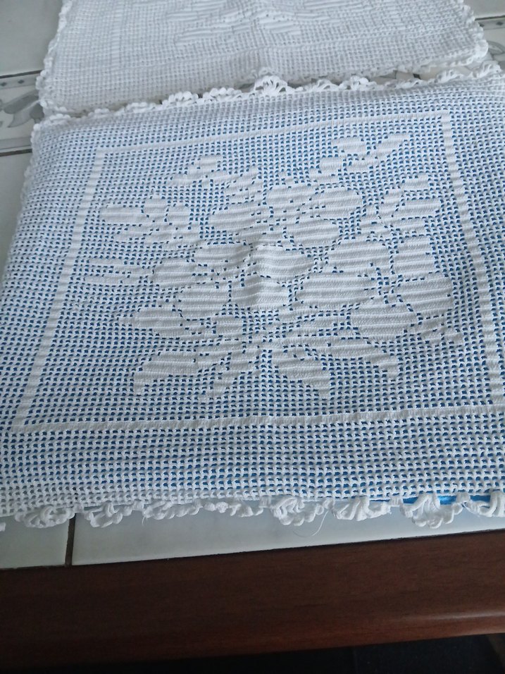 ince dantel ipi ile örülmüş çiçek desenli düzgün işçilikli dantel kırlent kılıfı 2 adet