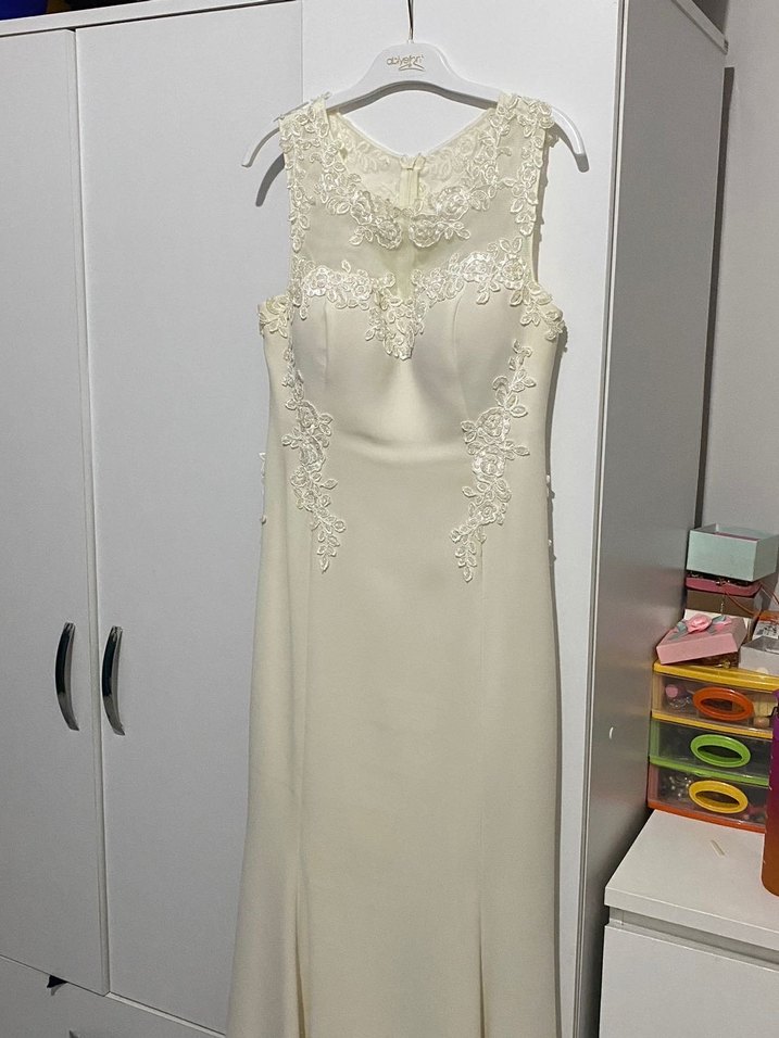 1 kez giyildi giyime bağlı lekeler mevcut kuru temizleme görmesi gerekir 63 kilo 1.65 boy ile giyildi rengi kırık beyazdır