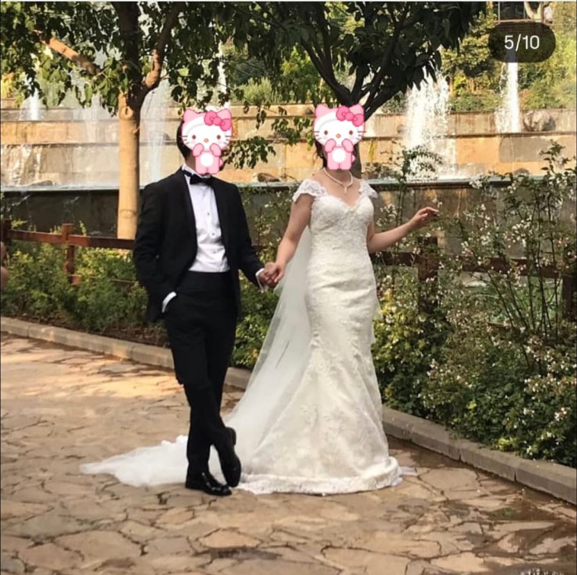 Beyaz renkli, balık kesim, belden eklenen ek eteği kabarık çıkarılabilir, dantel detaylı, uzun gelinlik. Zarif bir görünüme sahiptir. 54 kilo