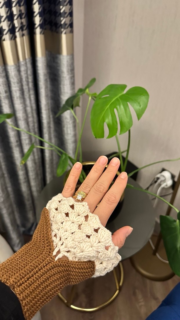 Bej renkli, dantel detaylı örgü eldivenler, bohem ve retro tarzıyla sıcak bir görünüm sunar.