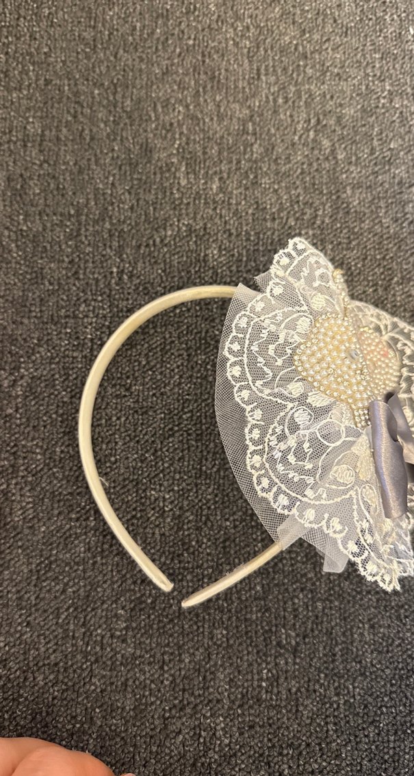 Bej renkli, dantel detaylı ve inci süslemeli örme saç bandı, klasik zarafet ve bohem tarzı bir araya getiriyor.