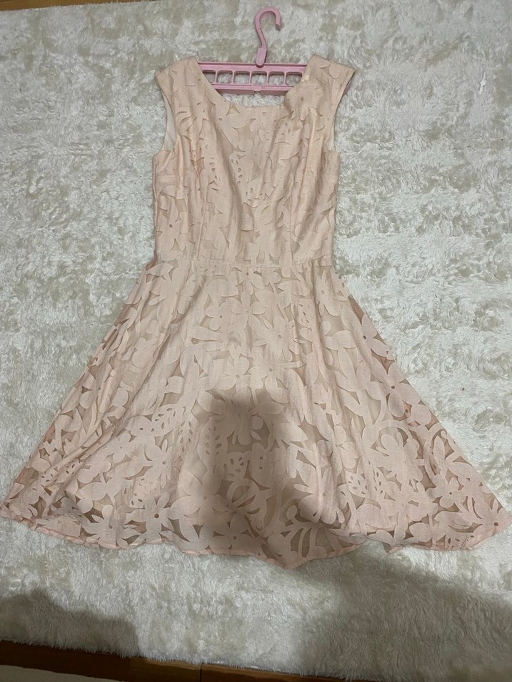 Dantel detaylı, bej renkli midi boy abiye elbise. Kolsuz, straplez yuvarlak yakalı sırtı v yaka ve vücuda oturan kesime sahip. Düğünler için uygun. Sadece bir kez giydim renki toz pembe bej arası görselde koyu gözükmüş ama açık bir renk bedeni 36 boyum 1.62 diz hizasında duruyor.