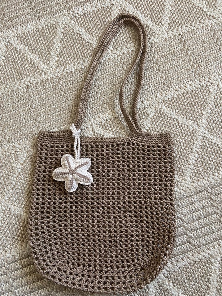 Bej renkli, örgü kadın çantası, dantel detaylı ve nakışlı çiçek süsüyle bohem, minimal ve retro tarzda. Boyutu büyüktür plaj çantası olarak da kullanılabilir. Farklı renk ve modelde örülür.