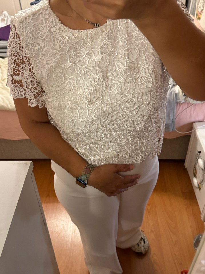 Dantel Detaylı Beyaz abiye tulum