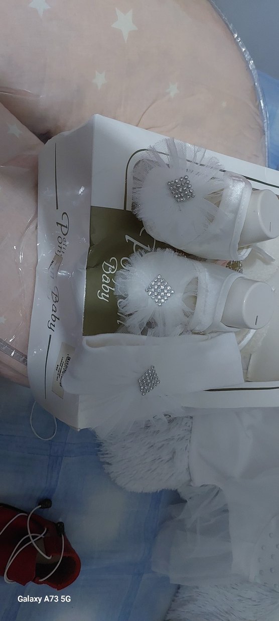 Dantel detaylı, taş süslemeli beyaz bebek ayakkabısı. Yumuşak ve narin tasarım, özel günler için uygun. Beyaz renk taşlı bebek bandası ve ayakkabısı sıfır hiç kullanılmadı.Yeni sahibine hayırlı olsun.İzmir içi elden teslim sağlanır.