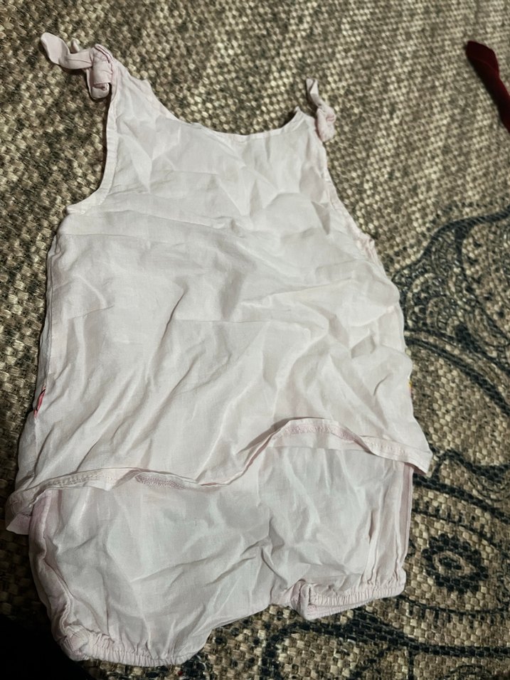 , ayarlanabilir askılı pastel pembe bebek kız tulumu. Yumuşak kumaşı vardır