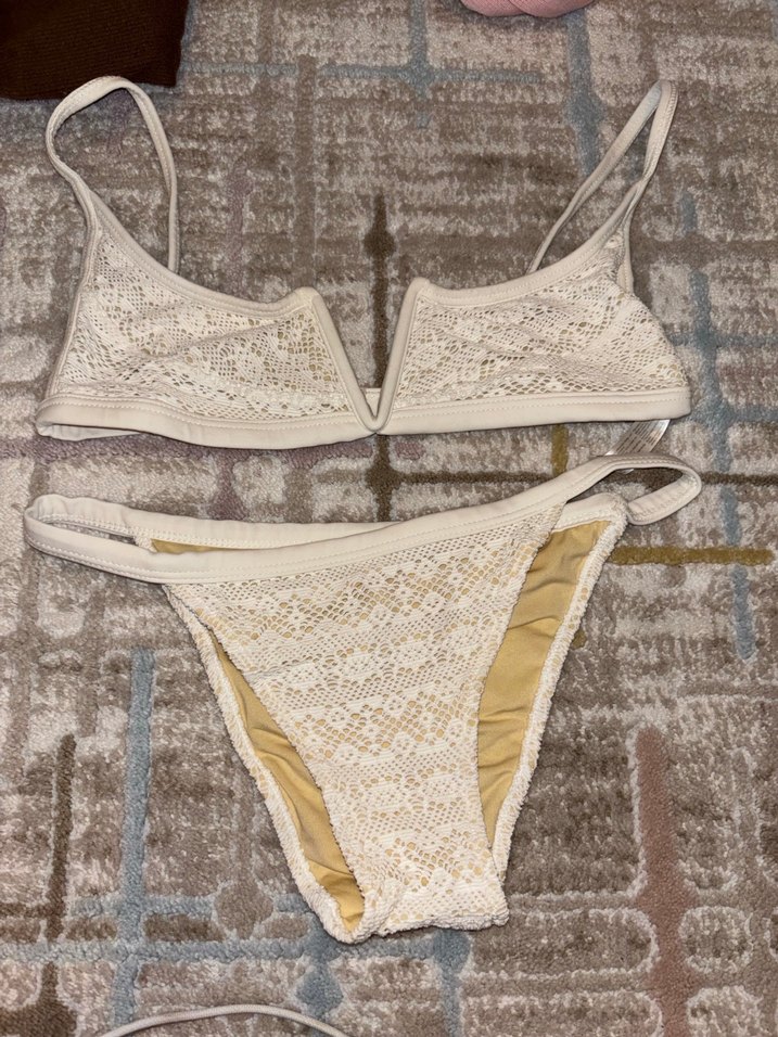 Dantel detaylı, ince askılı beyaz bohem bikini, normal uzunlukta ve midi kesimlidir. Plaj için uygun, hafif ve rahat kumaştan yapılmıştır. ️