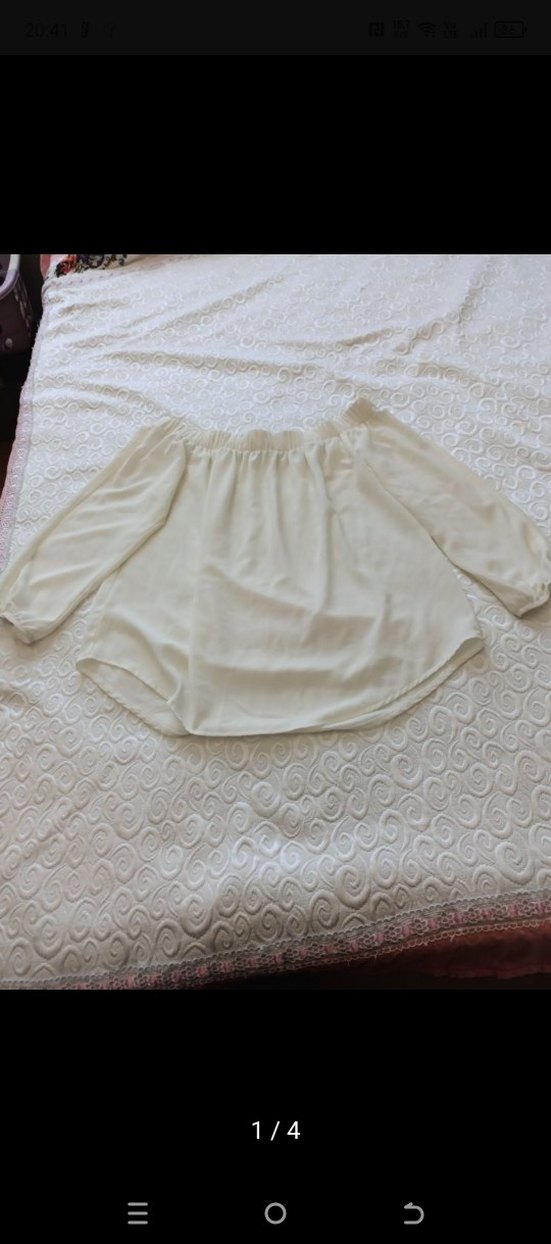 Uzun kollu, dantel detaylı beyaz keten bluz. Salaş kesimi ve tekne yaka ile bohem tarzda, günlük kullanıma uygun.