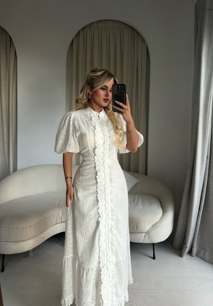 Dantel Detaylı Beyaz Bohem Fisto midi Elbise