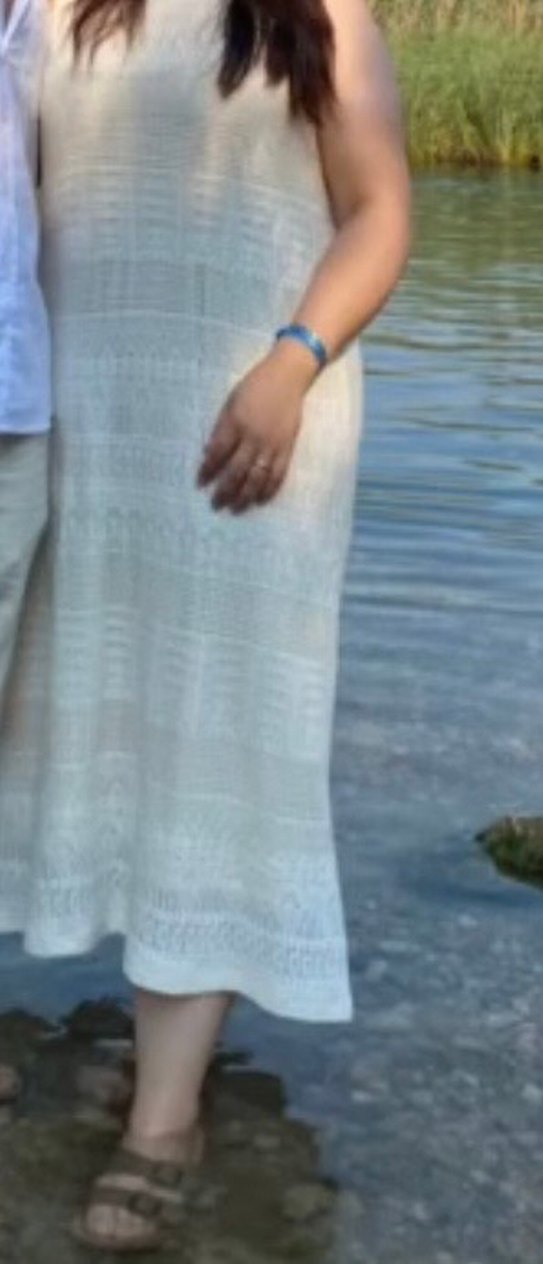 Dantel detaylı, uzun ve bol kesim beyaz hamile eteği, pamuklu yumuşak kumaştan yapılmıştır. Bohem tarzını yansıtarak düğünlerde kullanılabilir. 1 kez giyildi