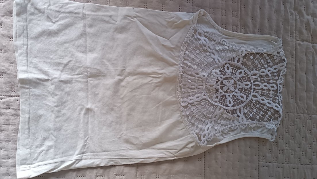 Dantel detaylı, yumuşak dokulu beyaz kadın aklet l Bohem, hippie ve retro tarzlarını yansıtan vintage bir model.