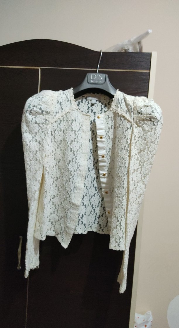Dantel ve nakış detaylı, uzun kollu, yakalı beyaz bohem tarzı kadın bluz, günlük kullanıma uygundur.