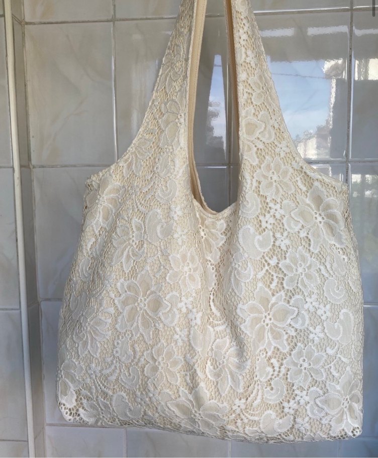 Günlük kullanıma uygun, nakışlı dantel detaylı beyaz bohem tarzda örgü kadın çanta.