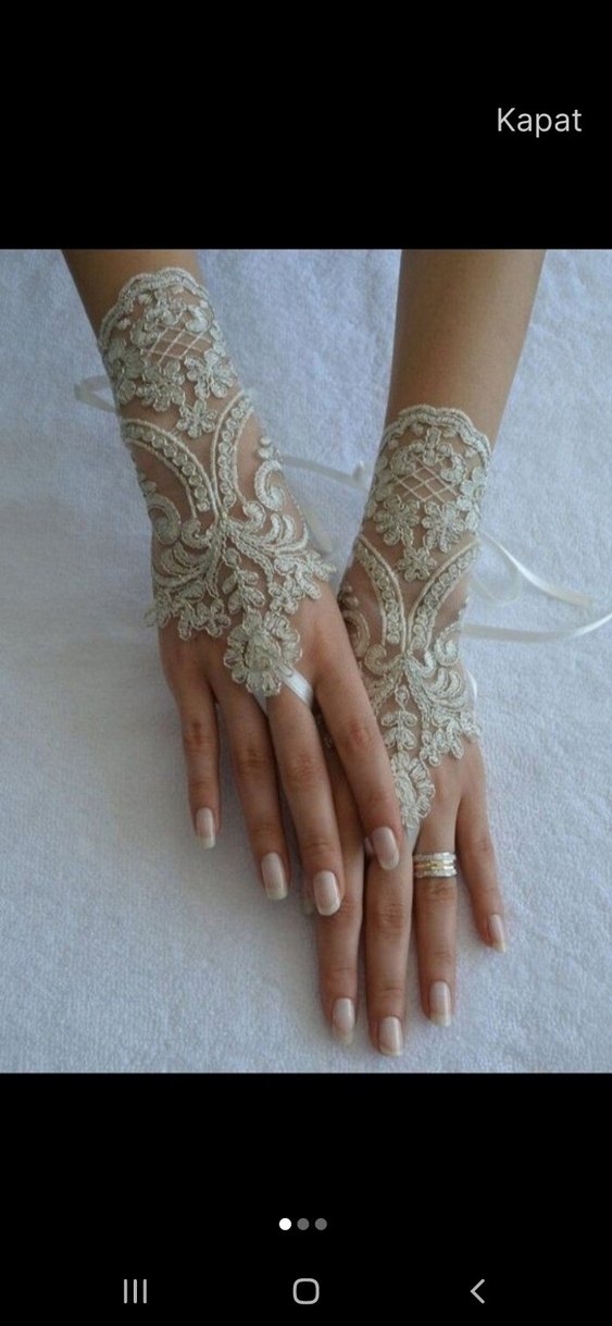 Beyaz renkli, dantel detaylı, bohem tarzda kadın eldiveni. Hafif ve vintage bir görünüm sunar. LÜTFEN YENİ İLAN AÇTIRINIZ 1ÇİFT FİYATIDIR