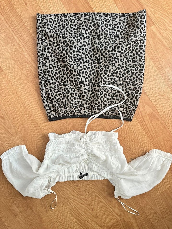 Bohem tarzda, dantel detaylı beyaz kedi kıyafeti, gri zebra desenli. Yumuşak kumaşıyla konfor sağlar.