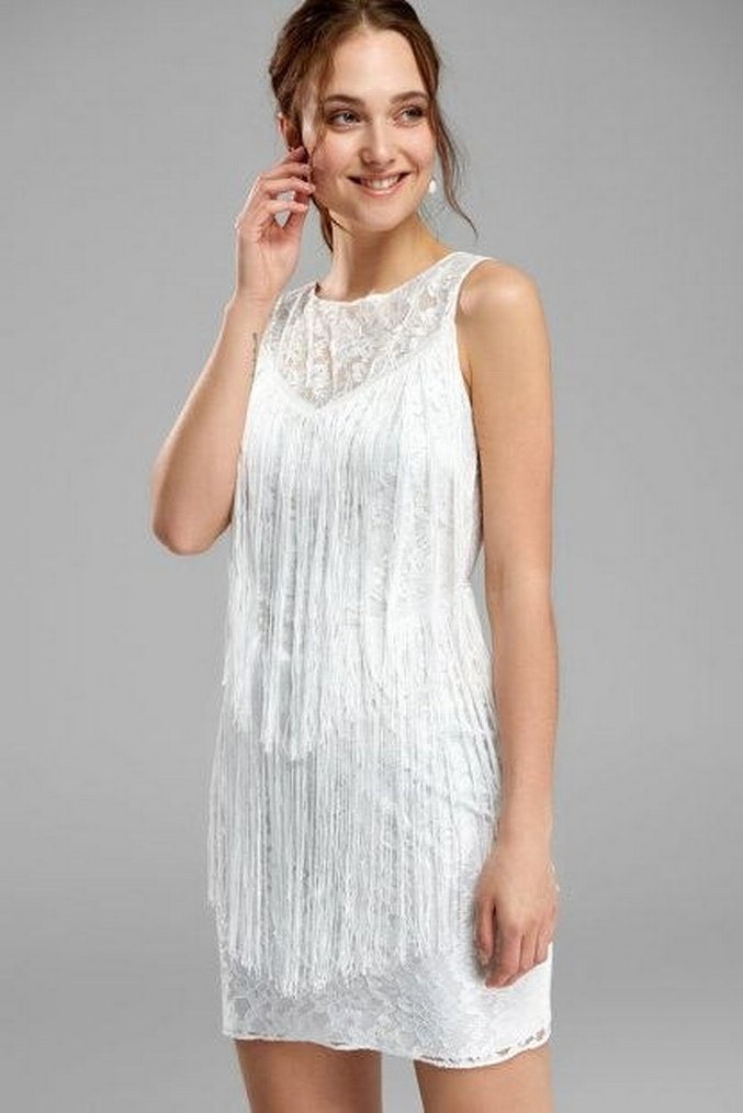 Dantel detaylı, kolsuz beyaz bohem midi elbise. Nakışlı desenlere ve V yaka tasarıma sahip, rahat kesimli ve parti için uygun. 0 ayarında yepyeni