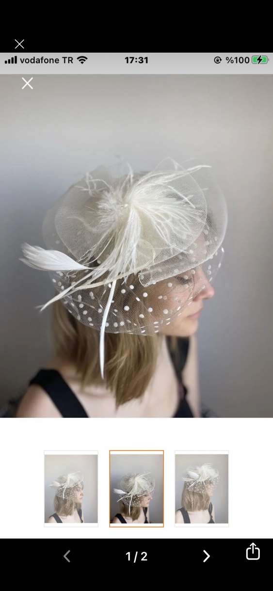 Bu beyaz bohem nikah şapkası, ince dantel ve hafif tüy detayıyla Parisli avangart tarzını modaya uygun şekilde yansıtıyor.