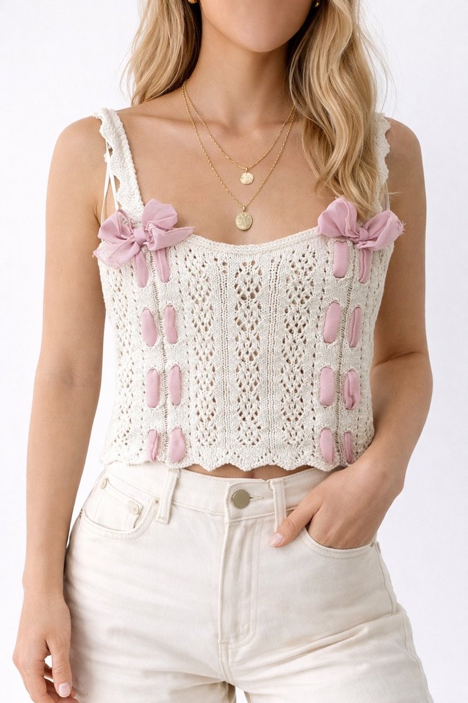Dantel Detaylı Beyaz Bohem Örgü Büstiyer