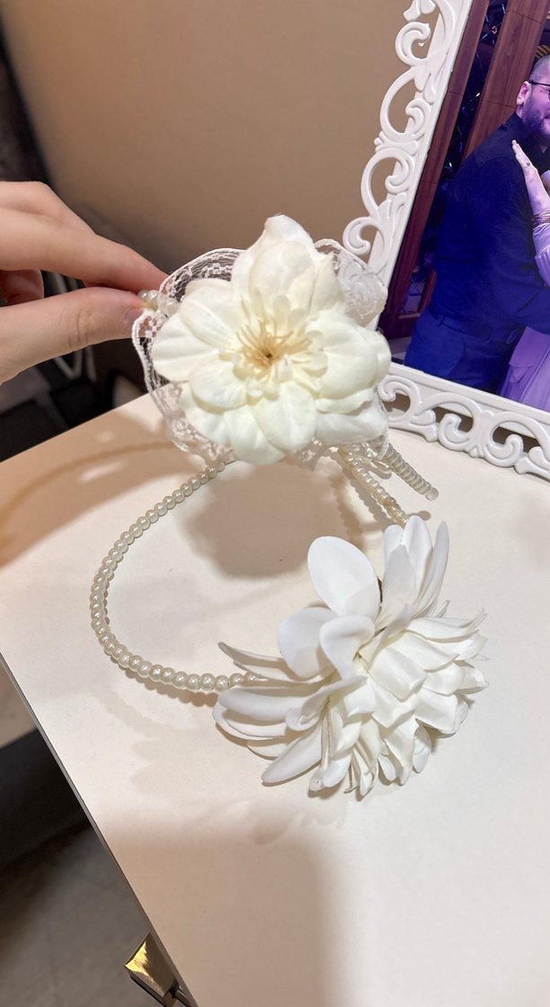 Lohusa taçları hiç takmadım Beyaz bohem saç aksesuarı, örme kumaş ve dantel detaylı, zarif çiçek motifleriyle süslenmiştir. Vintage ve avangart tarzlar için uygundur.