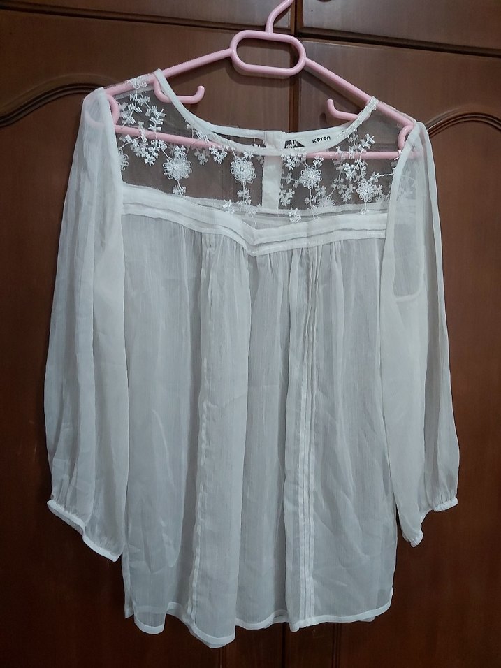Üst kısmında dantel detayları vardir şifon tarzdadır haricinde bir hasari yoktur