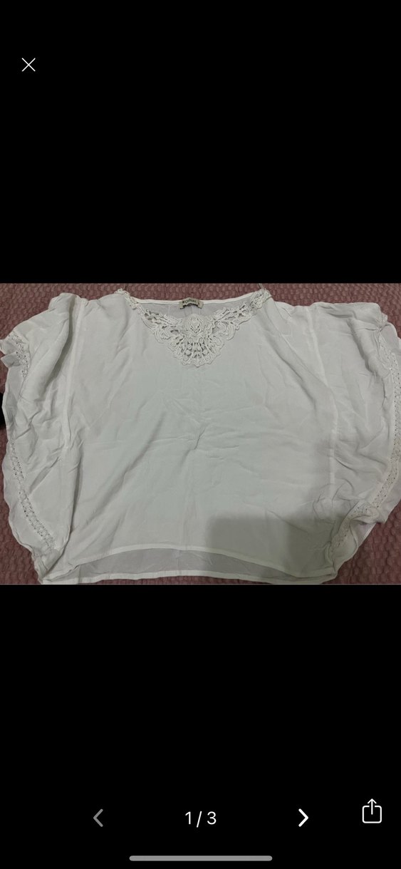 Dantel detaylı V yaka, kısa kollu, bol kesim beyaz bluz. Yumuşak keten kumaştan, günlük kullanıma uygun bohem tarzda. Lc waikiki xl beden defosuz az kullanıldı