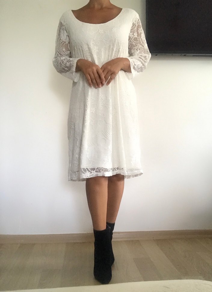 Yumuşak Güpür Beyaz Elbise
