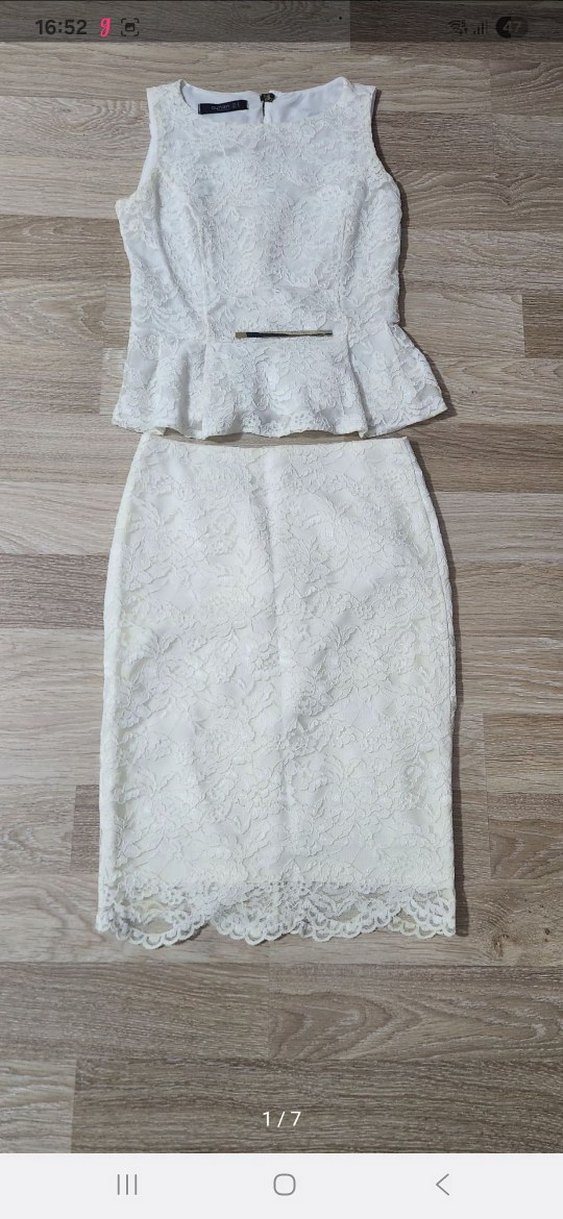 Ayhan marka M beden. Beyaz mini abiye elbise, straplez yaka ve işlemeli dantel kumaş ile. Regular fit ve kolsuz, bohem tarzda, düğünler için uygun.